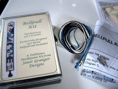 The little salt box will end up in one kitchen or another. I got the two planters because I want to build a couple of topiaries. The blue and white pottery will end up in the William and Mary house, and the little metal mug and goblets are by Falcon Miniatures.